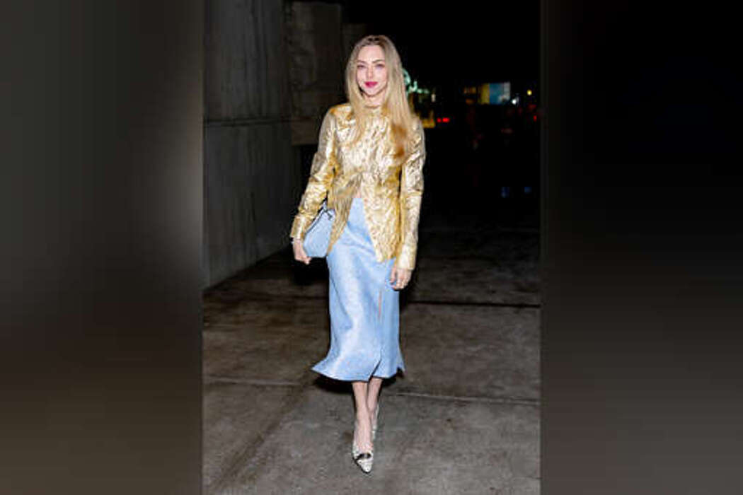 Актриса Аманда Сейфрид посетила показ в Нью-Йорке. Звезда фильма «Горничная» выбрала для мероприятия золотую блузу, которую оставила расстёгнутой, голубую юбку и яркую сумку. Образ дополнили туфли на среднем каблуке с пёстрым принтом, сообщает Daily Mail.