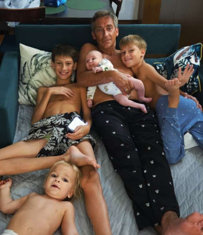 На фото Артём, совершенно расслабленный в обычных домашних штанах, нежно держит на руках крошечного Леона, их третьего общего сына. Остальные наследники буквально облепили папу, озаряя кадр беззаботными улыбками. Всех собрала Екатерина, запечатлев этот невероятно тёплый, непринужденный момент.