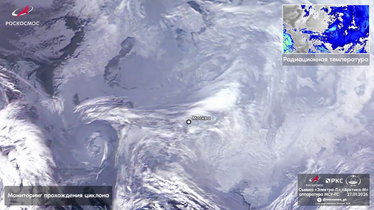 Ранее, 7 и 26 января, «Роскосмос» уже делился снимками этого циклона, снятыми с орбиты. В начале месяца специалисты предупреждали, что циклон спровоцирует аномальные снегопады в московском макрорегионе.