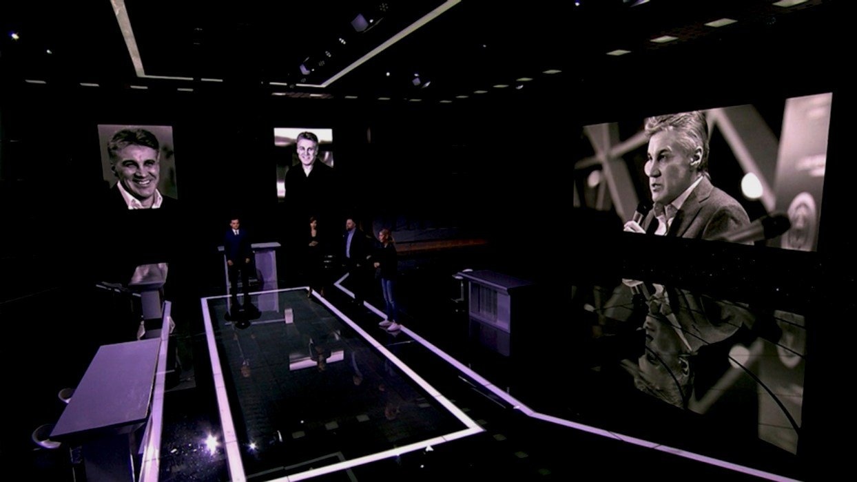 «Создатель программы “Открытый эфир” Алексей Викторович Пиманов сейчас на черно-белых фотографиях. Алексей Викторович для многих из нас был не просто руководителем, он был старшим товарищем, он был другом, и он в любой самый сложный момент умел, мог и старался протянуть руку помощи. И он научил нас быть такими, какими мы стараемся быть. Он научил нас быть открытыми, честными, прямыми», — рассказала ведущая.