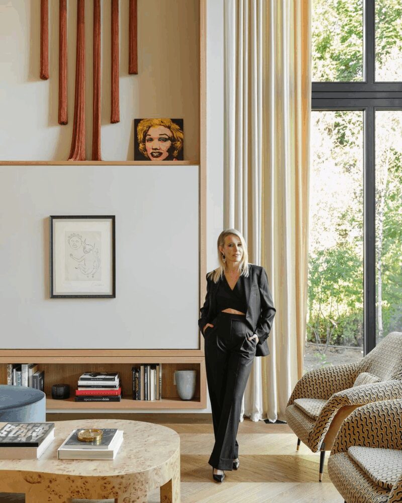 Внутри дом поражает гармоничным сочетанием стилей. Здесь отчётливо ощущается индивидуальность Ксении: современный минимализм искусно переплетается с классическими элементами. В отделке преобладают светлые, «пыльные» оттенки, латунь и натуральное дерево. Особую гордость хозяйки вызывают двери: они выполнены из дерева, но визуально имитируют металл, создавая интересный оптический эффект и подчёркивая любовь Ксении к неожиданным дизайнерским решениям.