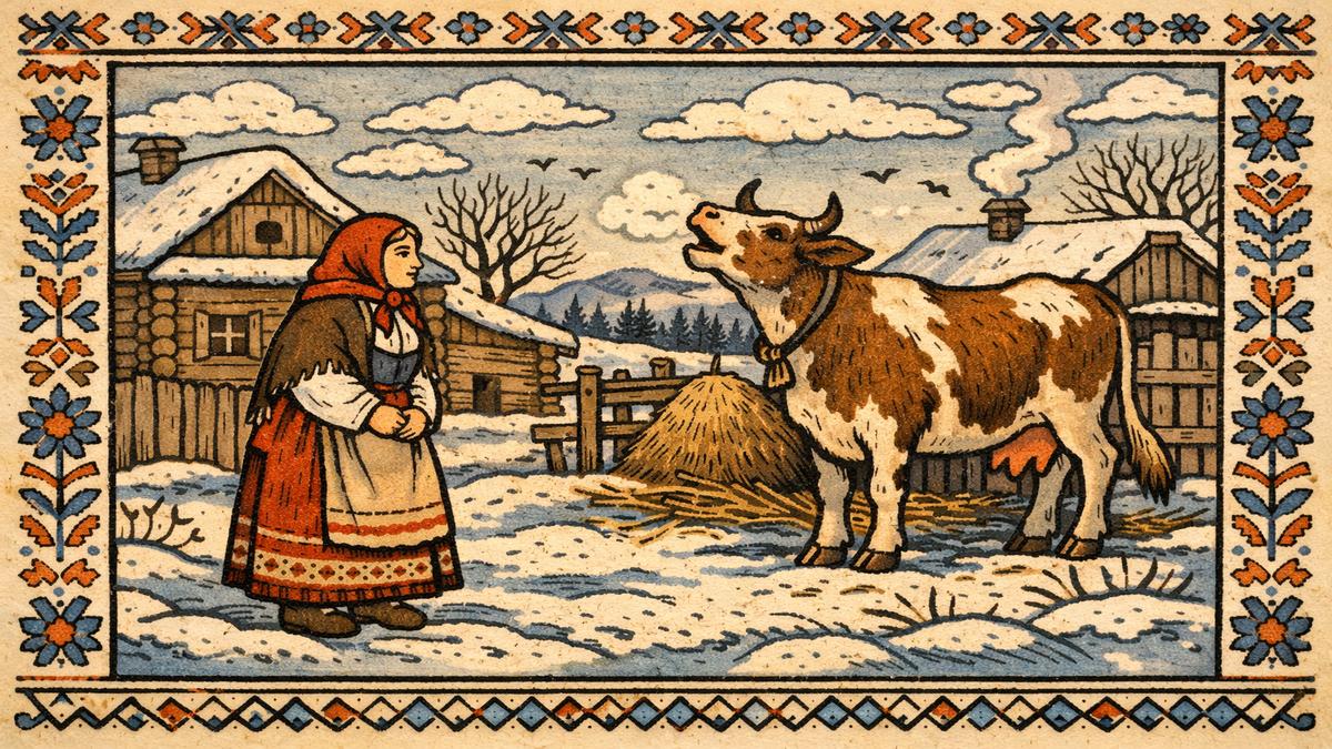 - Громкое мычание коров предвещает оттепель. (Наблюдательные хозяева знали: животные чутко реагируют на изменения атмосферного давления и влажности. Возможно, их “ворчание” действительно было индикатором потепления.)