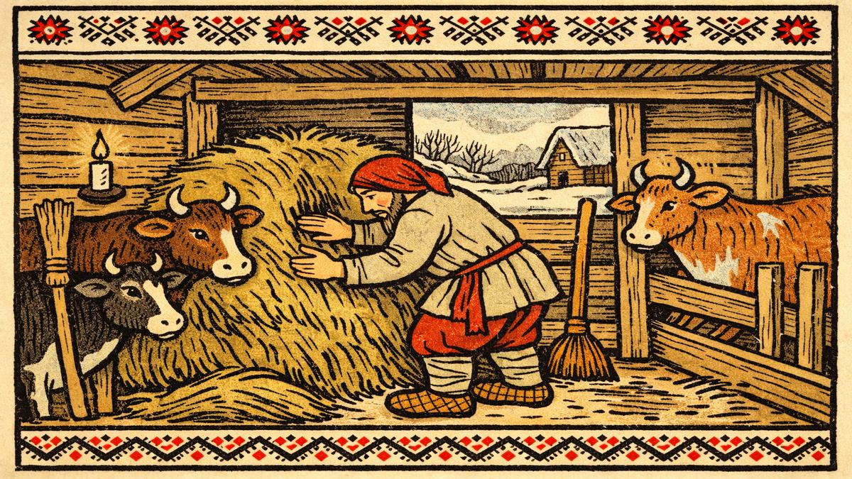 - Установка «стражников» (метел или серпов) в хлеву на ночь для отпугивания волков и нечисти. Эти предметы считались оберегами, способными защитить скот. Современный взгляд: Элемент психологической защиты и профилактики, как современная сигнализация, только с народным колоритом.