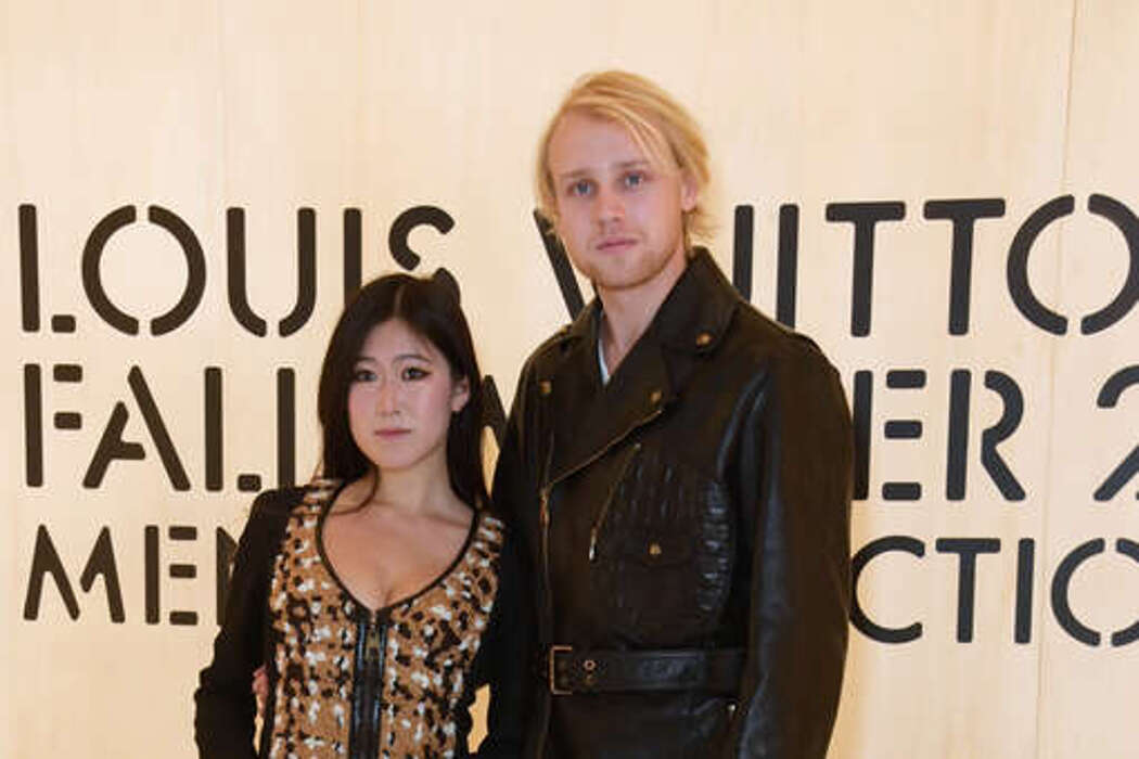 Наследник знаменитой красавицы выбрал для закрытого светского мероприятия весьма эффектный образ: чёрный кожаный плащ, дополненный широкими брюками и кроссовками. Образ завершало массивное кольцо на руке. Его спутница Эрин предпочла элегантный чёрно-коричневый костюм с юбкой, капроновые колготки и туфли на каблуках. В руках девушки красовалась сумочка с фирменным логотипом Louis Vuitton.