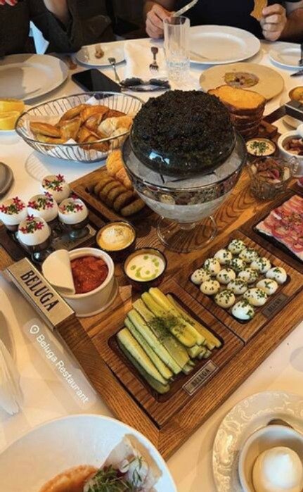 Наследница артиста посетила столичный ресторан «Белуга». Там она запечатлела заказанное блюдо под названием «Завтрак Бурлака».